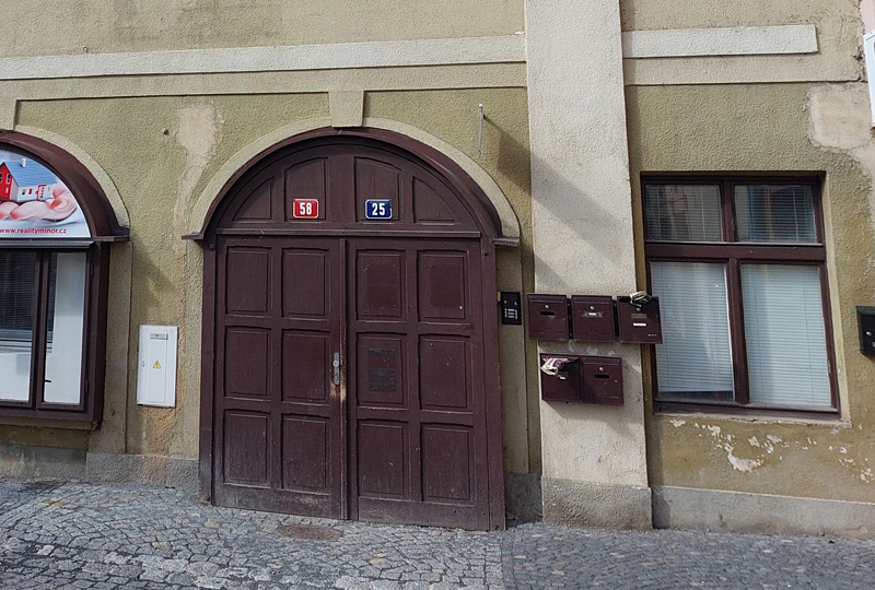 Vstup do Masérského relaxačního studia se nachází v rohu v čp. 58 – v prostorách bývalého ČEDOKU, vedle Foto Slaný a květinářství.